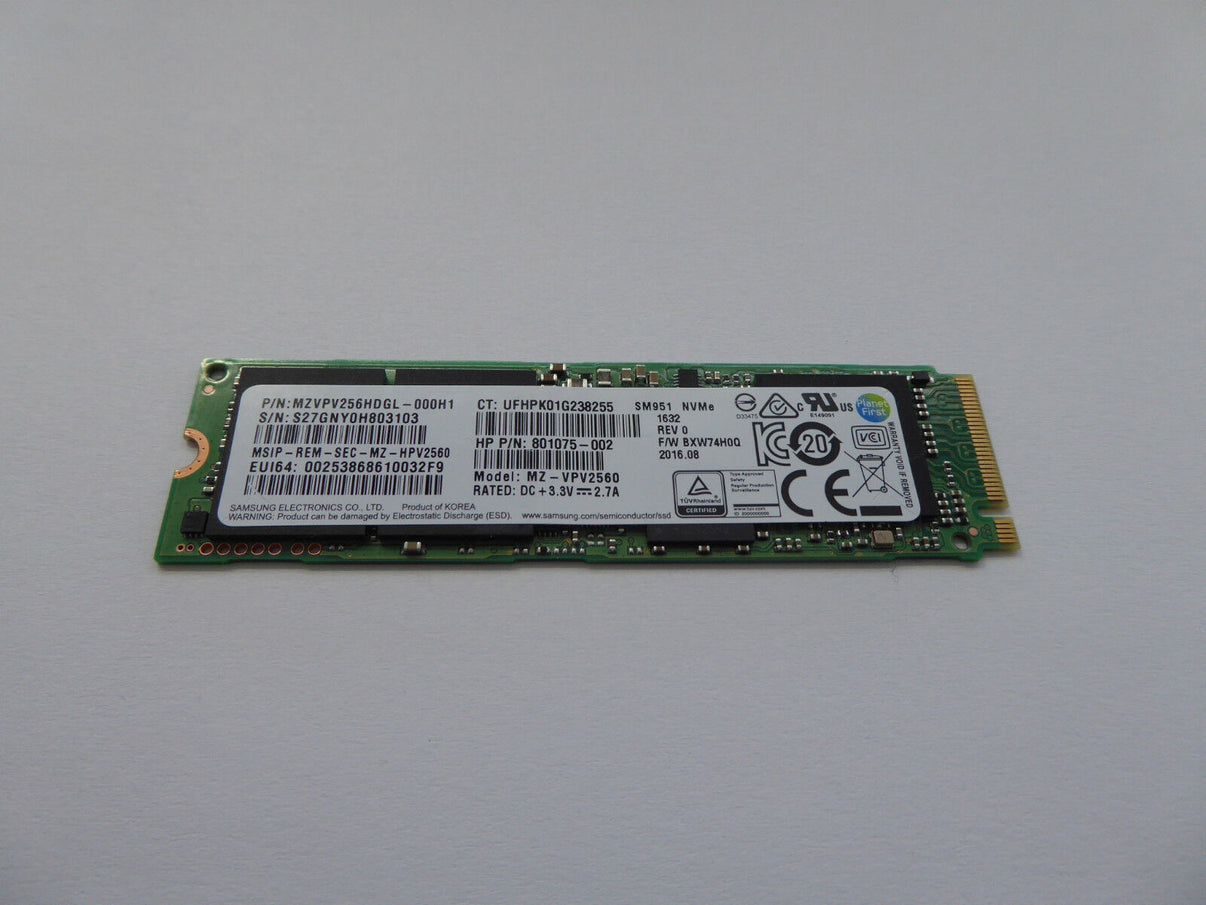 HP Samsung 256GB PCIe m.2 SSD MZVPV256HDGL-000H1 HP: 801075-002 SPS: 848363-001 / baugl. SM961 / PM961