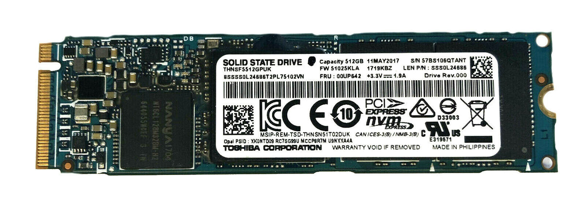 Lenovo 00UP542 Toshiba 512GB SSD PCIe 512G XG4 Re/MWst.