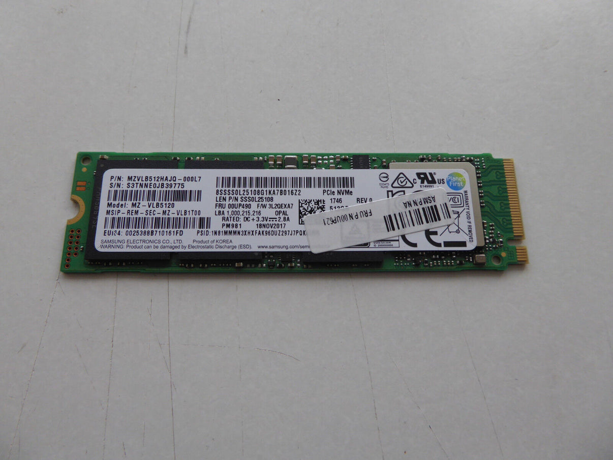 Lenovo 512GB m.2 2280 SSD PCIe NVMe Samsung PM981 Thinkpad P51 P71 T480s