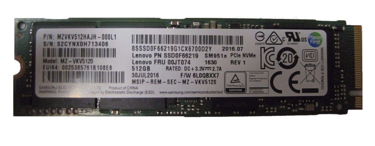 Lenovo ThinkPad 512GB m.2 2280 SSD PCIe NVMe 00JT051 P50 P70 P51 P71 X1 T470s