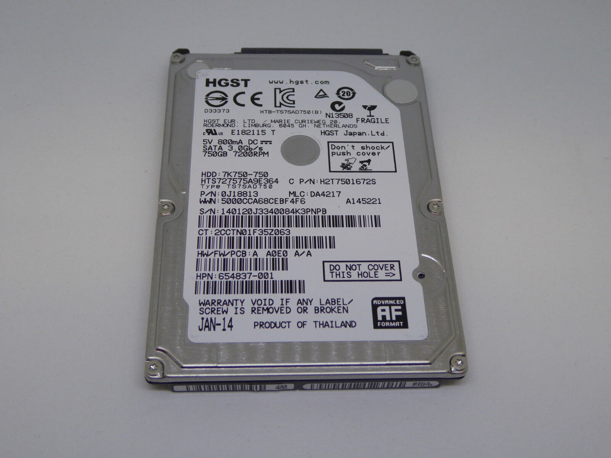 Notebook Festplatte 750GB-7200U/min 2,5" SATA2 3GB/s HGST Neu bulk