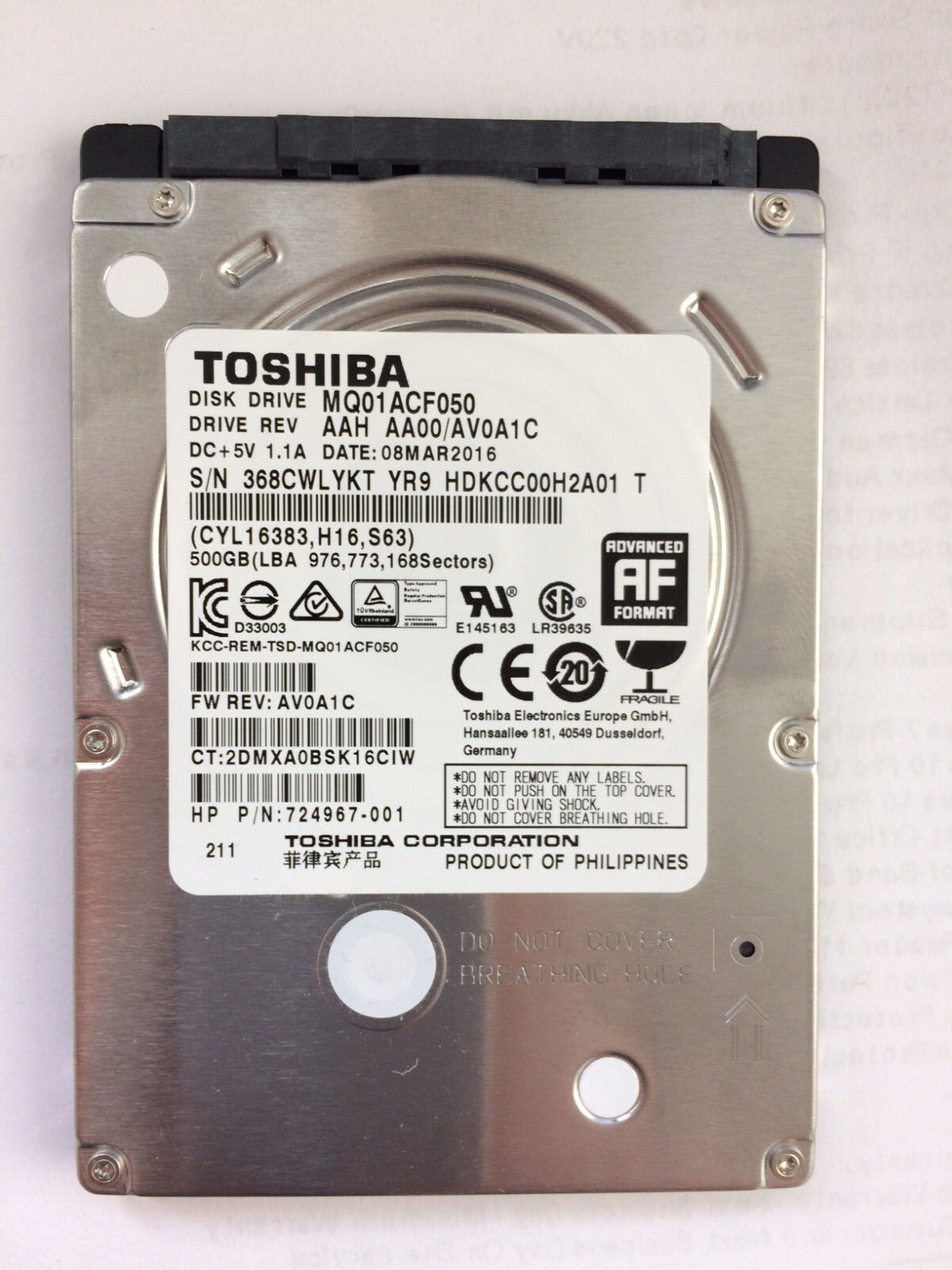 Original HP 500GB-7200U/min Toshiba HP/N: 724967-001 MQ01ACF050